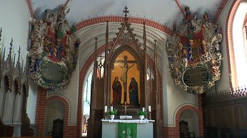 Von dort hat man nicht nur einen weiten Blick in die Mecklenburgische Schweiz und auf den Malchiner See, sondern bestaunt beim Betreten der Kirche das Innere dieser Wehrkirche mit ihren ganz besonderen Geheimnissen. Die Halle des Turmes, der großzügige Chorraum, das kunstvolle Kirchenschiff und die zwei übergroßen Epitaphe fallen beim Betreten der Kirche sofort ins Blickfeld. |
