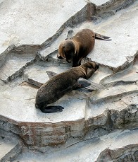 Ähnlich machen es junge Kalifornische Seelöwen auch in der Natur: Der Nachwuchs tut sich in Grüppchen zusammen, während die Mütter auf die Jagd gehen. Denn die müssen Energie tanken, um die fettreiche Milch für ihre Säuglinge produzieren zu können. Mit diesem Powertrunk verdoppeln die Neugeborenen ihr Geburtsgewicht von etwa sieben Kilogramm schon im ersten Monat. Mit sechs bis acht Monaten werden sie von ihren Müttern entwöhnt und müssen sich selbstständig ernähren. In der Wilhelma heißt das, sie müssen zwar nicht selbst Fische erlegen, aber lernen, die feste Nahrung aus der Hand des Pflegers anzunehmen. Bis dahin interessieren sich die Kleinen noch nicht für die Fütterungen, die immer um 11 und 15 Uhr (außer donnerstags) beginnen. Ihr Spielen wird nur unterbrochen, wenn die Mütter Mercedes und Evi zum Säugen vorbeischauen.