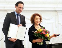 Stuttgarts Erster Bürgermeister Dr. Fabian Mayer (Foto-links) hat ihr am 12. April 2022 bei einer Feierstunde, mit musikalischer Begleitung durch das Stuttgarter Kammer-ensemble, im Weißen Saal des Neuen Schlosses Stuttgart Orden und Urkunde, die höchste Anerkennung, welche die Bundesrepublik für hervorragende Verdienste um das Gemeinwohl ausspricht, überreicht.